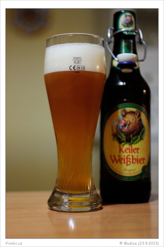 Zlatá barva, více zakalené, hezká světlá pěna.Vůně (3,5 - velmi dobré):