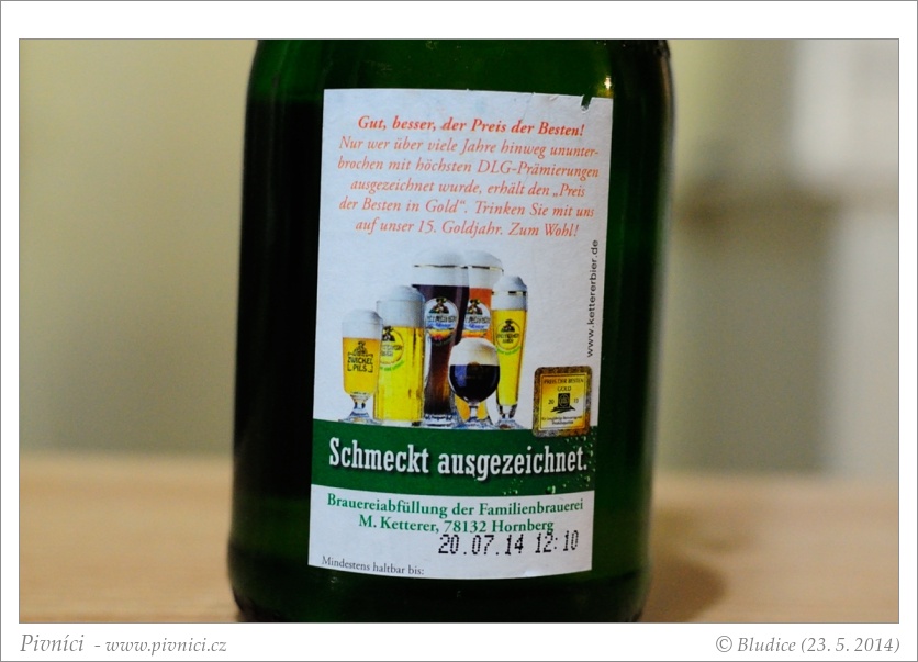 Krásně nachmelený nefiltrovaný Pils, jen je škoda té přihlouplé zelené láhve.Minimální trvanlivost: 20. 7. 2014