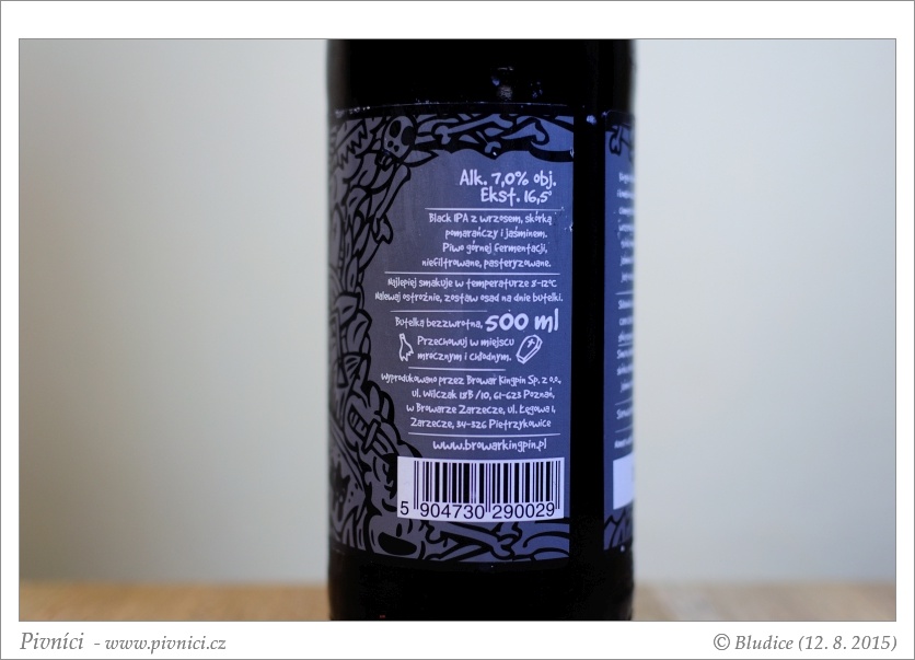 Fajn tmavá IPA. Dobře se popíjí.Minimální trvanlivost: 5. listopadu 2015