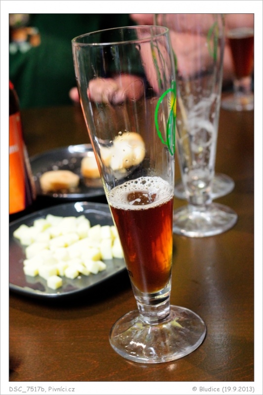 Barva měděná, velmi lehce zakalené. Pěkná hustá stabilní pěna.Vůně (3,5 - velmi dobré):