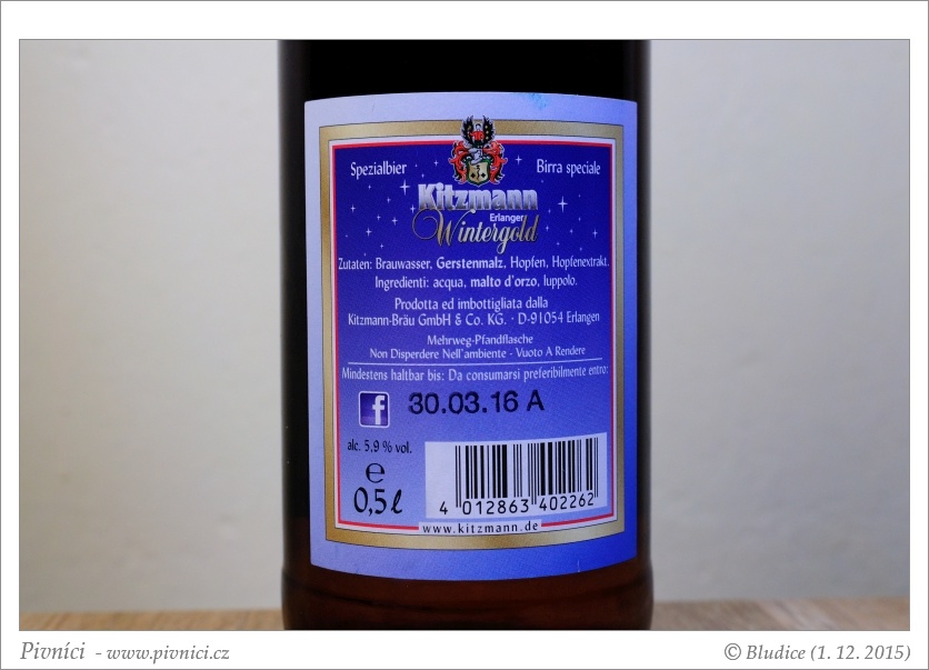 Zlatá barva, čiré, pěkná světlá pěna, slušně drží.Vůně (3,5 - velmi dobré):
