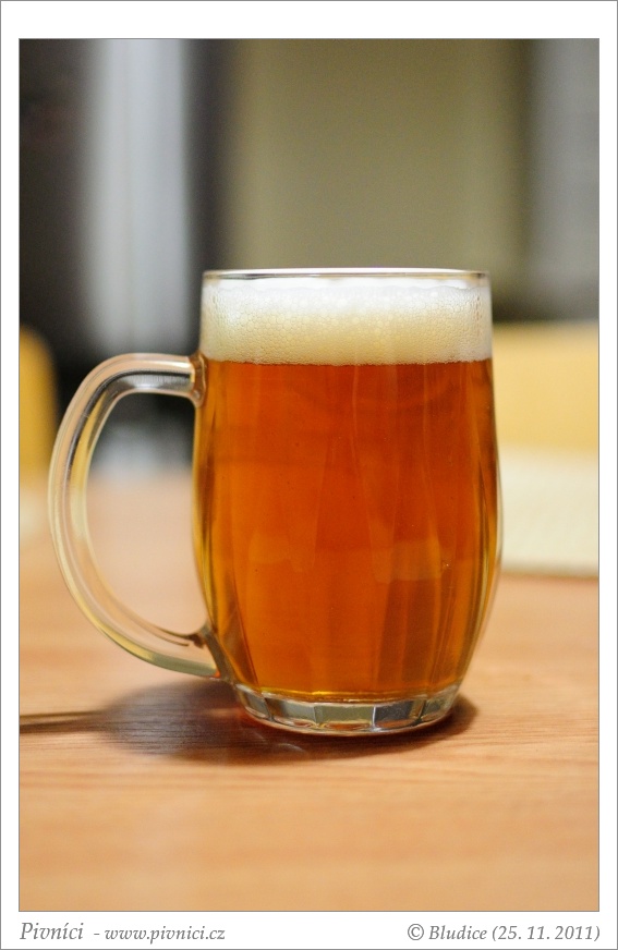 Tmavě zlatá barva, velmi lehce zakalené, slušná bílá pěna, celkem drží.Vůně (2,5 - lehce nadprůměr):