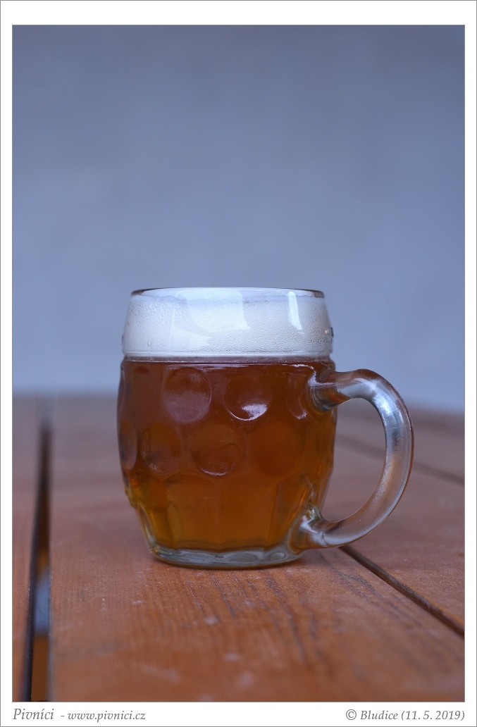 Zlatá barva, velmi lehce zakalené. Pěkná světlá pěna, dobře drží.Vůně (2 - průměr):