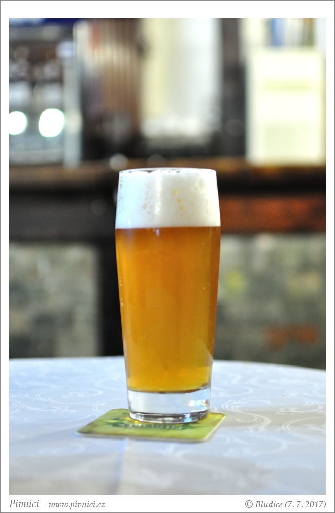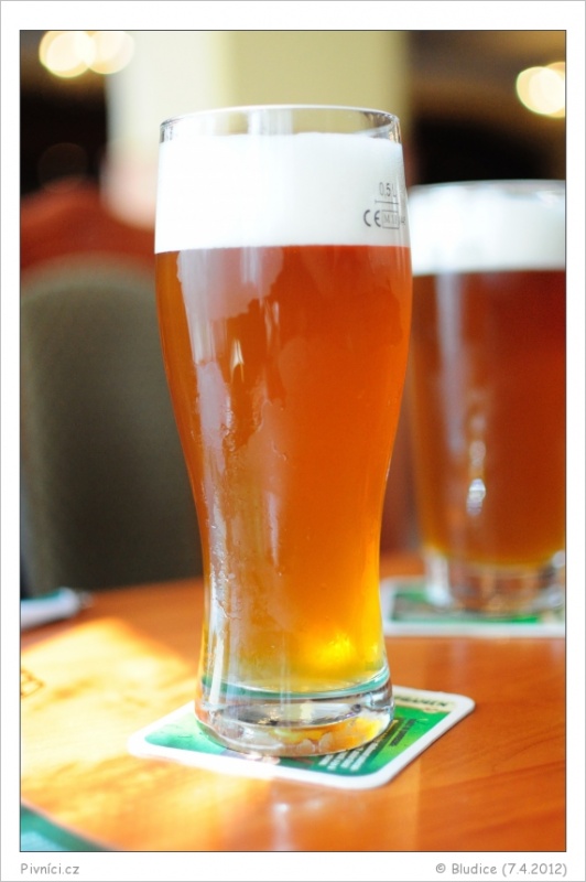 Zlatá barva, středně zakalené, hezká bílá krémová pěna.Vůně (3 - dobré):