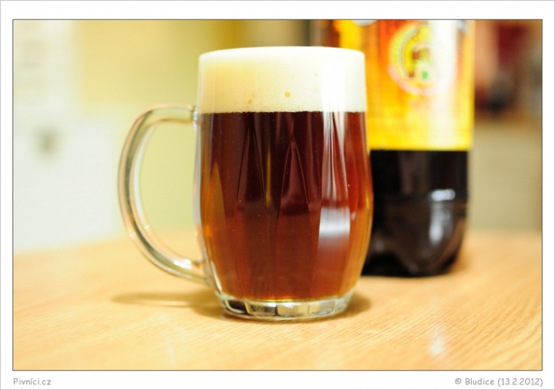Tmavší měděná barva, čiré. Pěkná světlá pěna, velmi dobře drží.Vůně (3 - dobré):