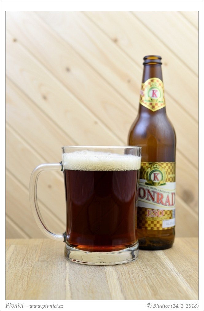 Temně měděná až mahagonová barva, čiré. Pěkná světlá pěna s okrovým nádechem, slušně drží.Vůně (2 - průměr):
