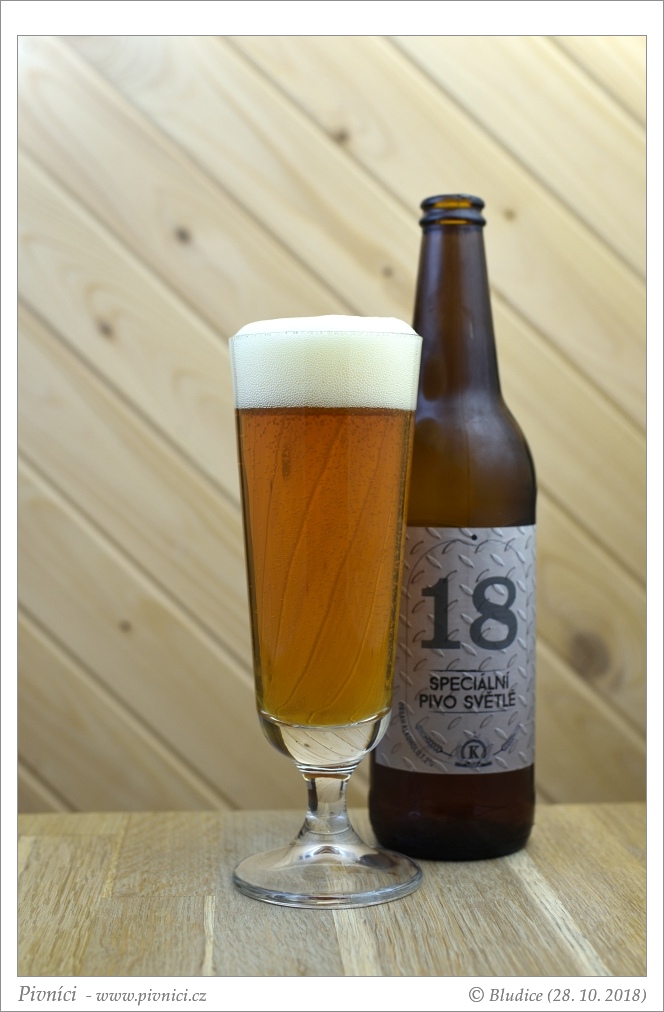 Zlatá barva, čiré. Pěkná světlá pěna, dobře drží, krásně kroužkuje.Vůně (3,5 - velmi dobré):