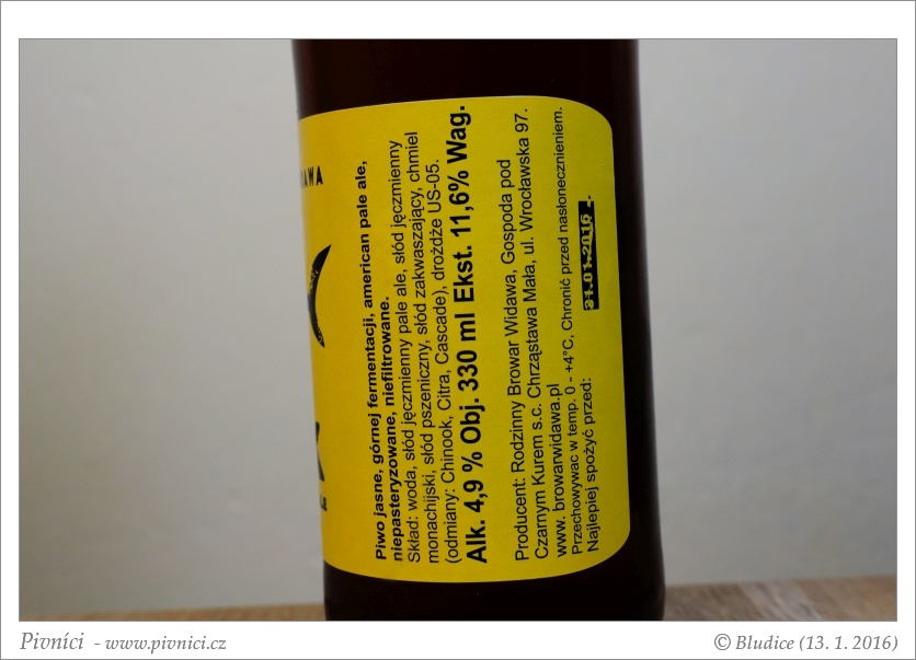 Výborně pitelné, pěkně chmelené pivo.Minimální trvanlivost: 31. ledna 2016