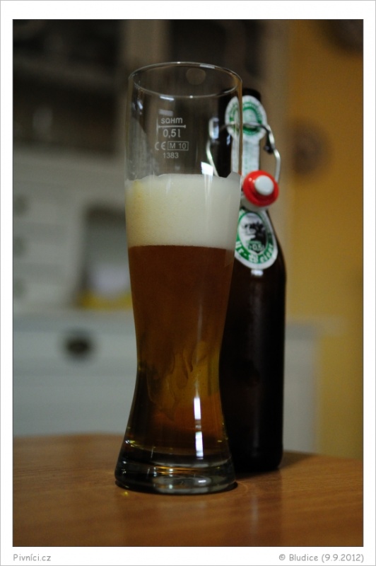 Barva slámová, zakalené. Pěkná hustá stabilní pěna.Vůně (3,5 - velmi dobré):