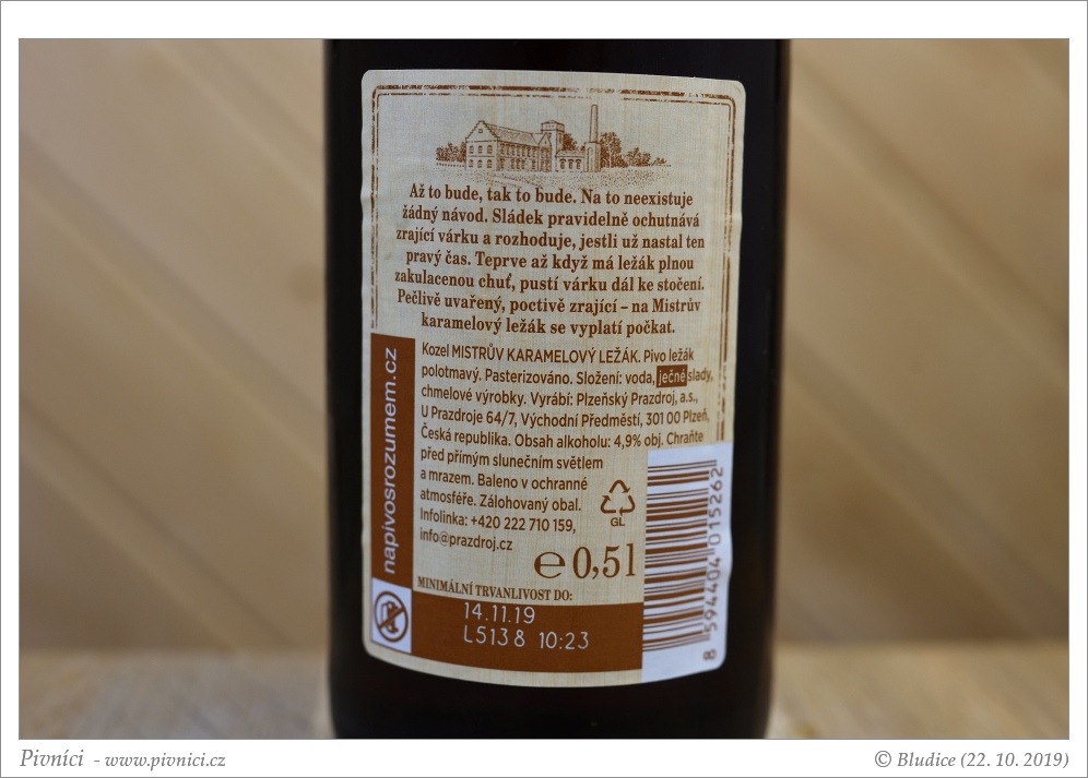 Nijak úžasné, ale celkem pitelné karamelovější pivo.Minimální trvanlivost: 14. listopadu 2019