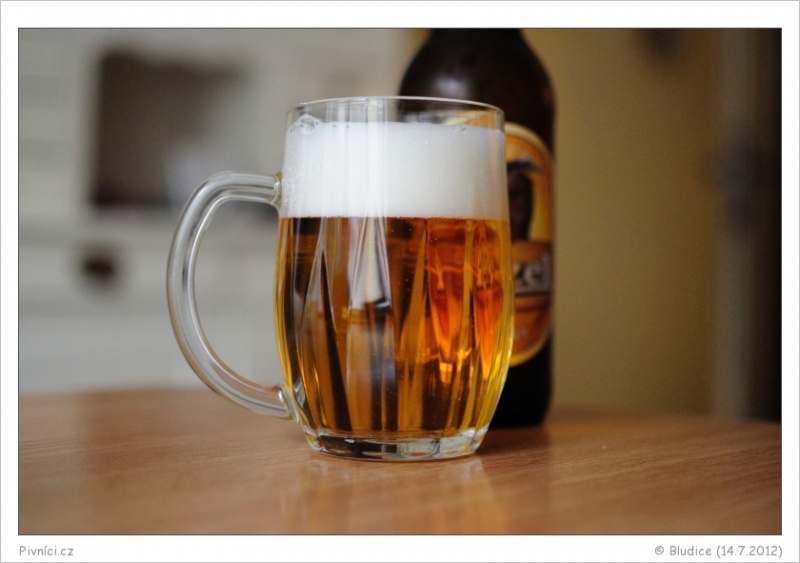 Zlatá barva, čiré, pěkná světlá pěna, dobře drží.Vůně (2,5 - lehce nadprůměr):