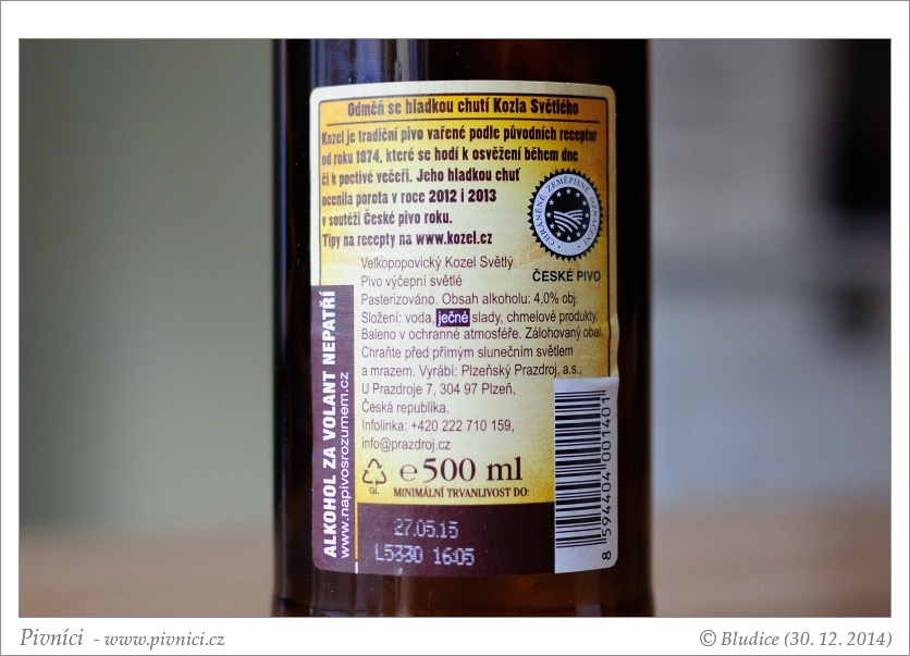 Nijak zvláště chuťově příjemné, ale celkem pitelné pivo.Minimální trvanlivost: 17. prosince 2018