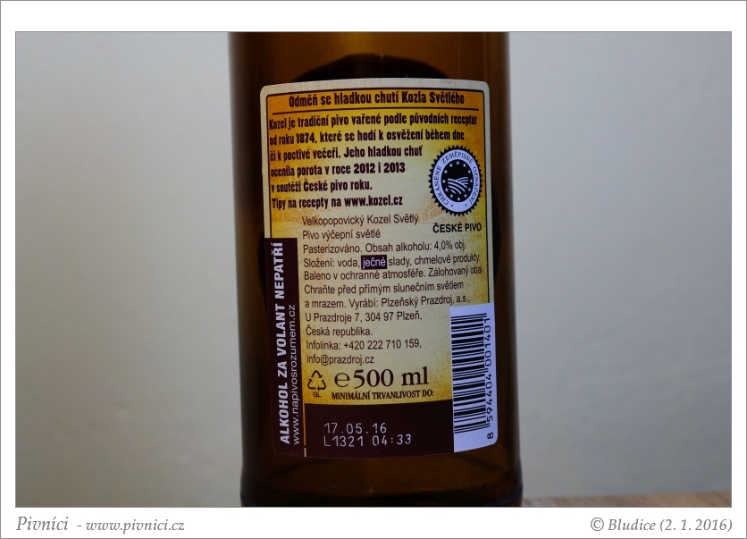 Nijak úžasné pivo, ale pít se celkem dá.Minimální trvanlivost: 24. října 2016