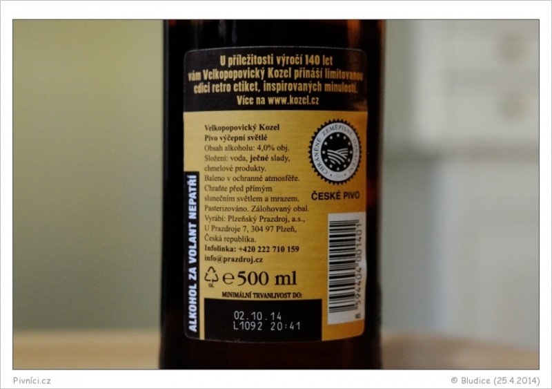 Celkem pitelné výčepní pivo.Minimální trvanlivost: 29. října 2017