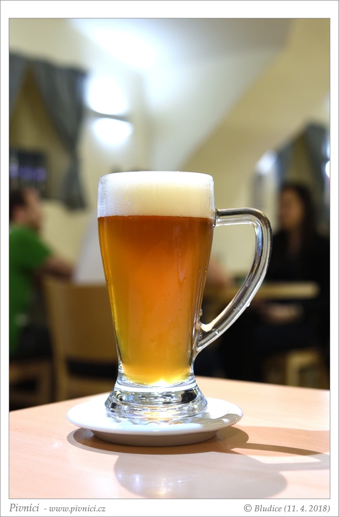 Barva zlatá, lehce zakalené. Pěkná hustá stabilní pěna.Vůně (2,5 - lehce nadprůměr):