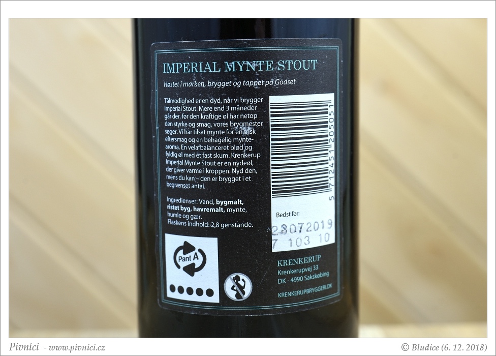 Zajímavý silný stout, ale na můj vkus trochu moc mátový.Minimální trvanlivost: 28. července 2019