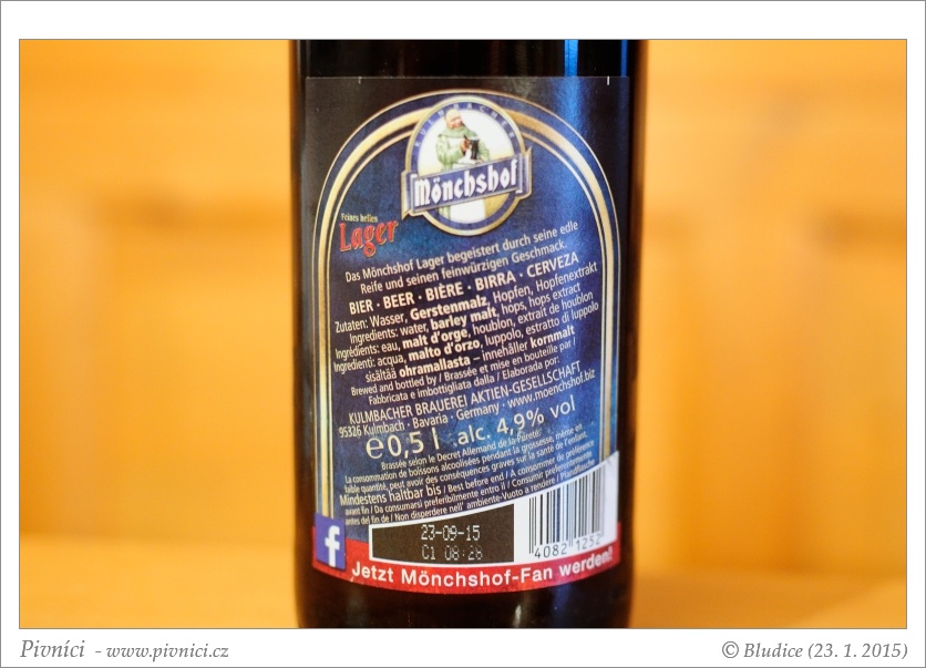 Zlatá barva, čiré, pěkná bílá pěna, slušně drží, pěkně kroužkuje.Vůně (2,5 - lehce nadprůměr):