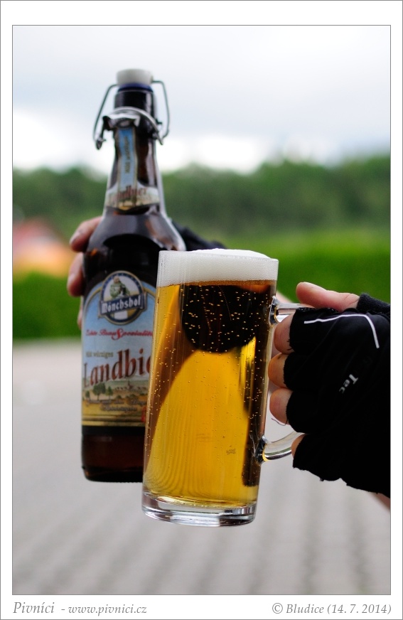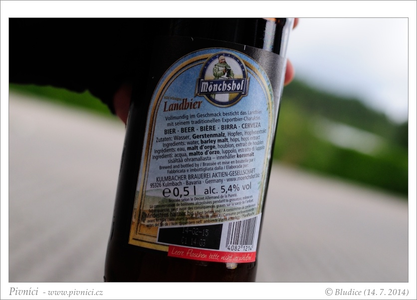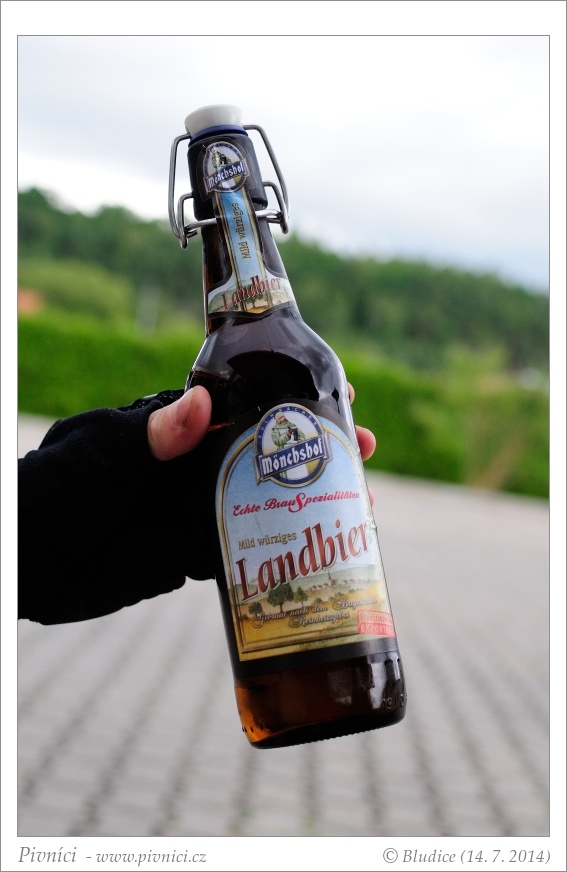 … pumpy, kde si kupujeme alespoň lahváče Mönchshof Landbier. S ním přečkáme krátkou přeháňku pěkně v suchu pod střechou …