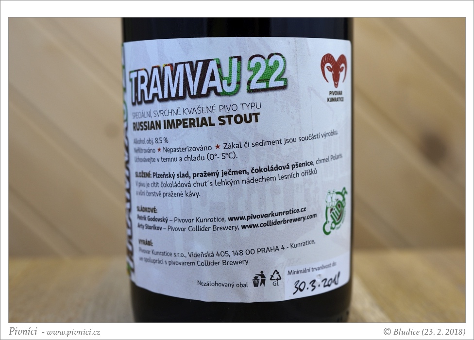 Chutný silný stout, velmi dobře se popíjí.Minimální trvanlivost: 30. března 2018