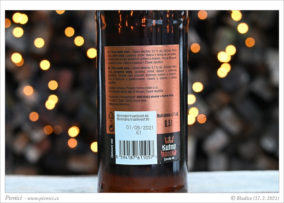Nijak úžasné pivo, ale pít se celkem dá.Minimální trvanlivost: 1. srpna 2021