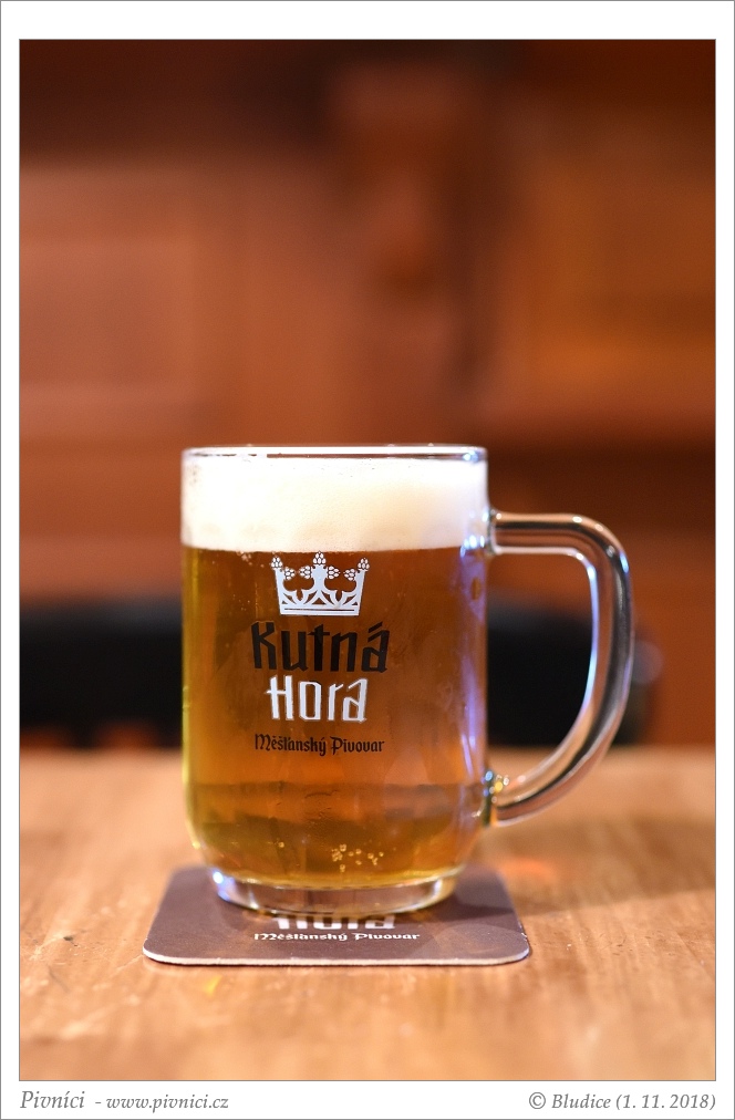 Zlatá barva, čiré, pěkná světlá pěna, dobře drží.Vůně (2,5 - lehce nadprůměr):
