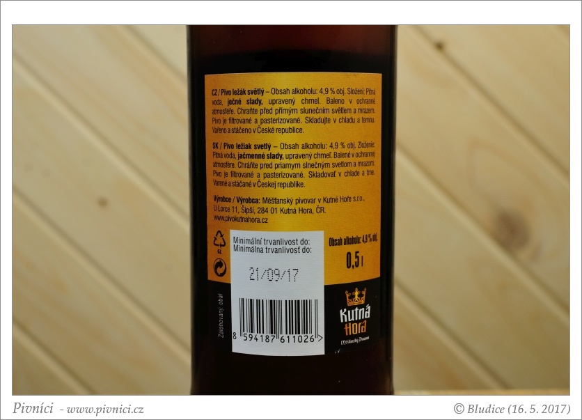 Trochu drsnější pivo, ale je slušně chmelené a pitelné.Minimální trvanlivost: 21. září 2017
