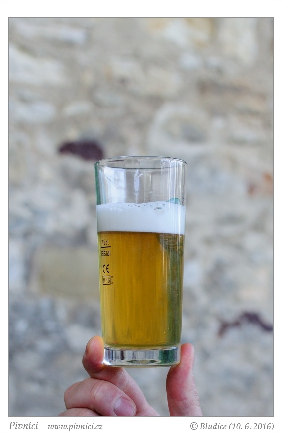 Světle zlatá barva, téměř čiré, pěkná světlá pěna, dobře drží.Vůně (1 - hnusné):