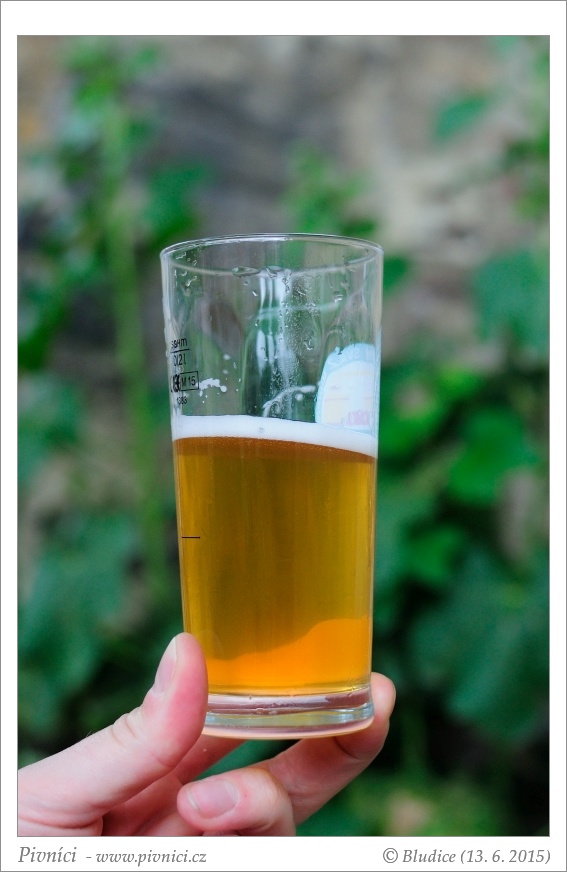 Světle zlatá barva, velmi lehce zakalené, pěkná světlá pěna, celkem drží.Vůně (1 - hnusné):
