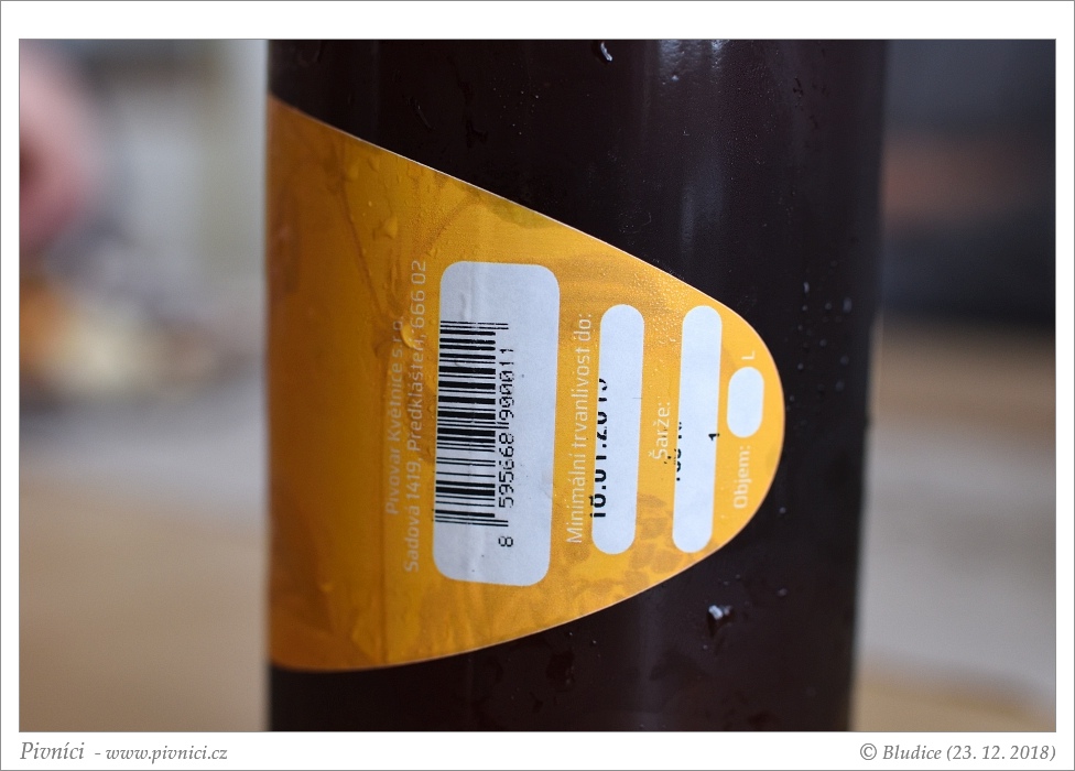Kořeněnější pivo, průměrně pitelné.Minimální trvanlivost: 16. ledna 2019