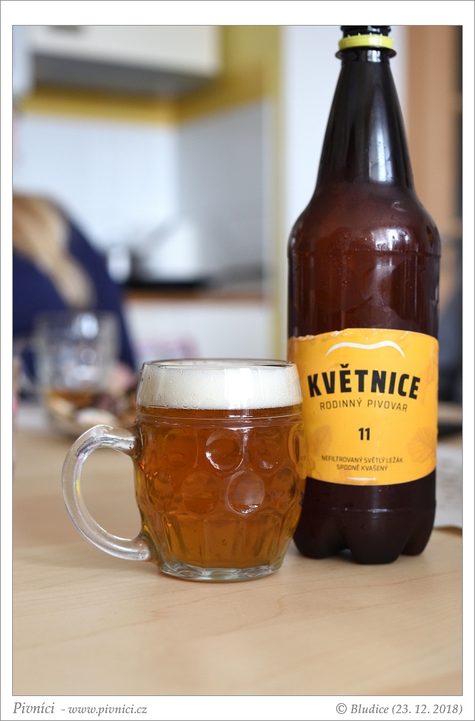 Zlatá barva, středně zakalené. Slušná světlá pěna s většími oky, celkem dobře drží.Vůně (2,5 - lehce nadprůměr):