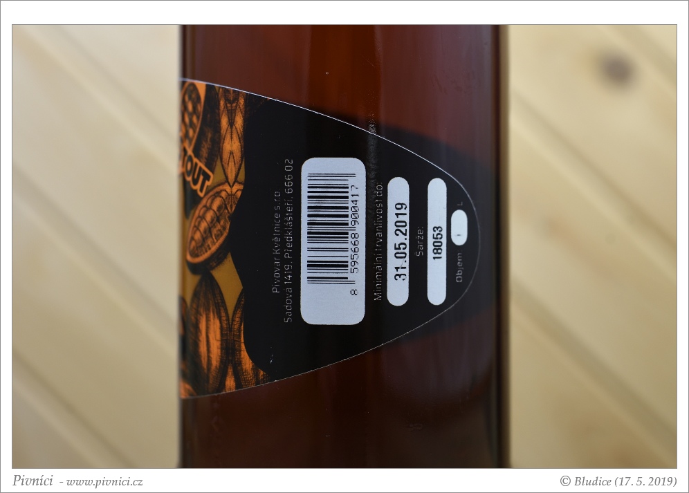 Kyselejší kávový stout, ale pít se celkem dá.Minimální trvanlivost: 31. května 2019