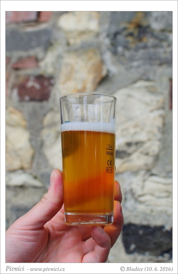 Zlatá barva, středně zakalené. Pěkná světlá pěna, dobře drží.Vůně (3,5 - velmi dobré):