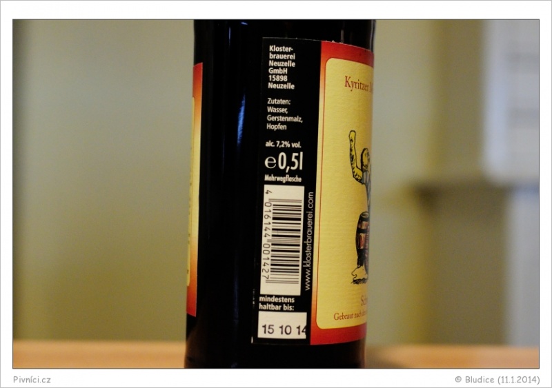 Vydařené a chutné pivo s dlouhým dozníváním. Skoro takový porter.Minimální trvanlivost: 15.10.2014