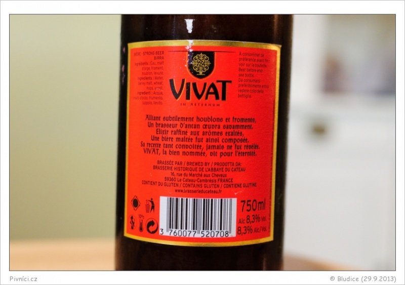Tmavší zlatá barva, čiré, krásná vysoká pěna.Vůně (4 - výborné):