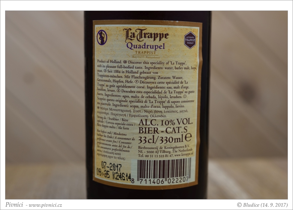 Velmi ovocné a hřejivé pivo, výrazné a s bezva dozníváním. Krásný usrkávací Quadrupel.Sledujte Pivníky
