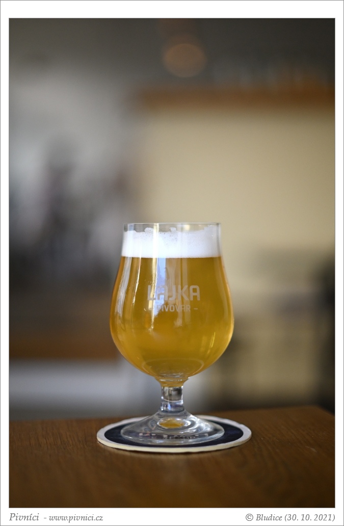 Slámová barva, lehce zakalené. Pěkná světlá pěna, dobře drží, hezky kroužkuje.Vůně (3 - dobré):