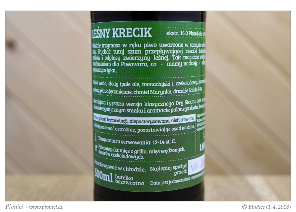 Chutný jemný stout s dlouhým čokoládovým dozníváním. Výborně se pije.Minimální trvanlivost: 31. července 2018