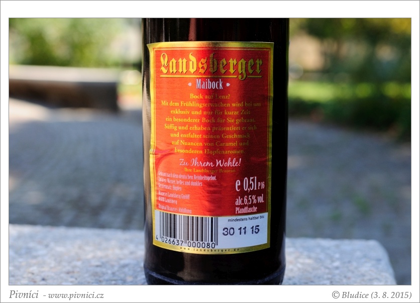 Dobře pitelné pivo.Minimální trvanlivost: 30. listopadu 2015
