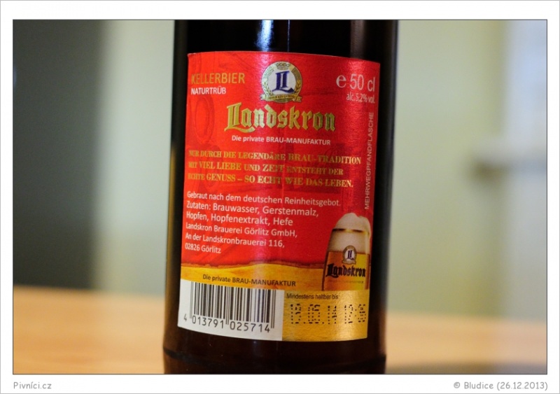 Trochu obilnější, ale dobře pitelný a pěkně chmelený Kellerbier. Výborný poměr cena / výkon.Minimální trvanlivost: 19.5.2014