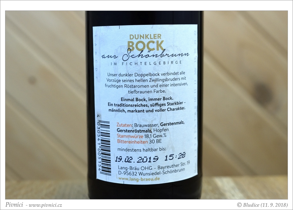Chutný sladovější tmavý bock, velmi dobře se popíjí.Minimální trvanlivost: 19. února 2019