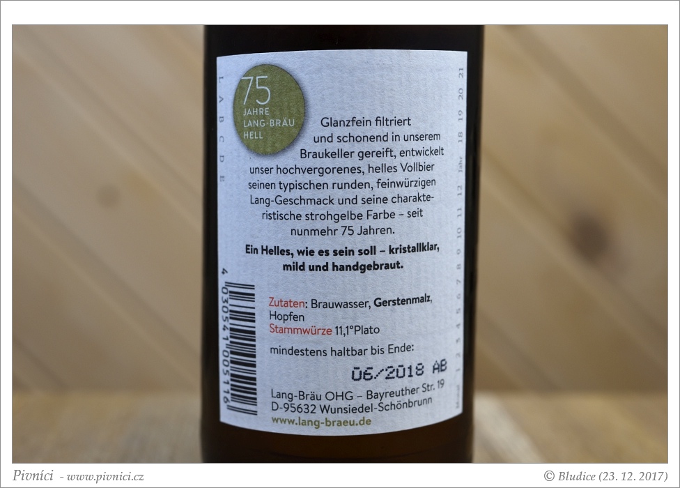 Lehce máslový, celkem dobře pitelný ležák.Minimální trvanlivost: 30. června 2018