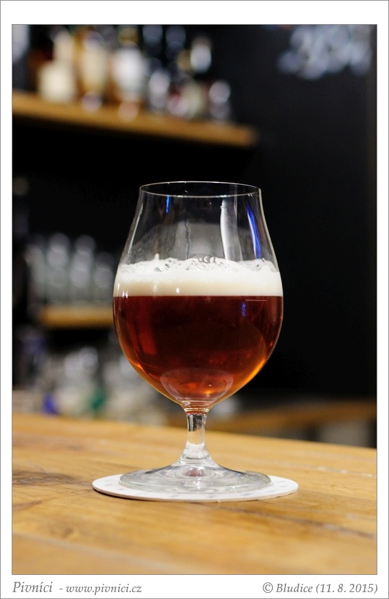 Tmavší měděná barva, čiré, pěkná světlá pěna s okrovým nádechem, velmi dobře drží.Vůně (4 - výborné):