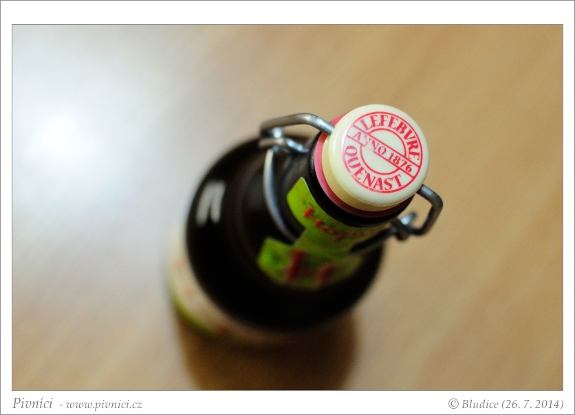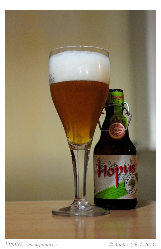 Tmavší zlatá barva, čiré, hezká vysoká bílá pěna, skvěle drží.Vůně (4 - výborné):