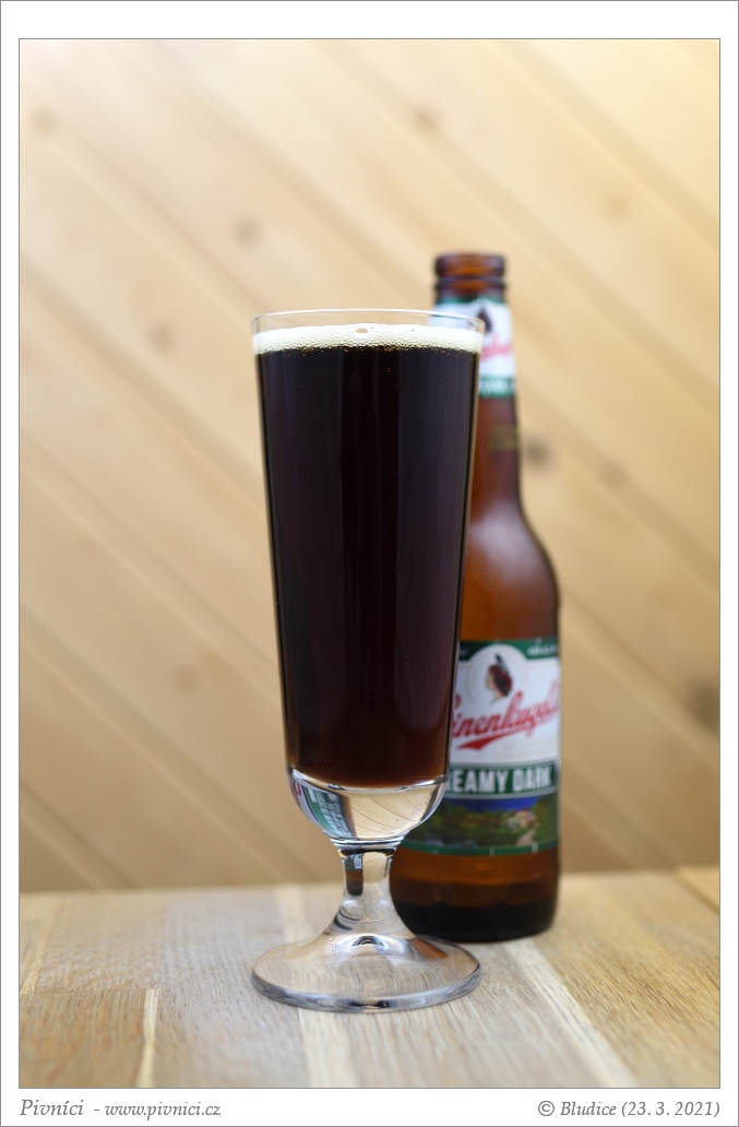 Mahagonová barva, čiré. Pěkná světlá pěna s okrovým nádechem, dobře drží.Vůně (3 - dobré):