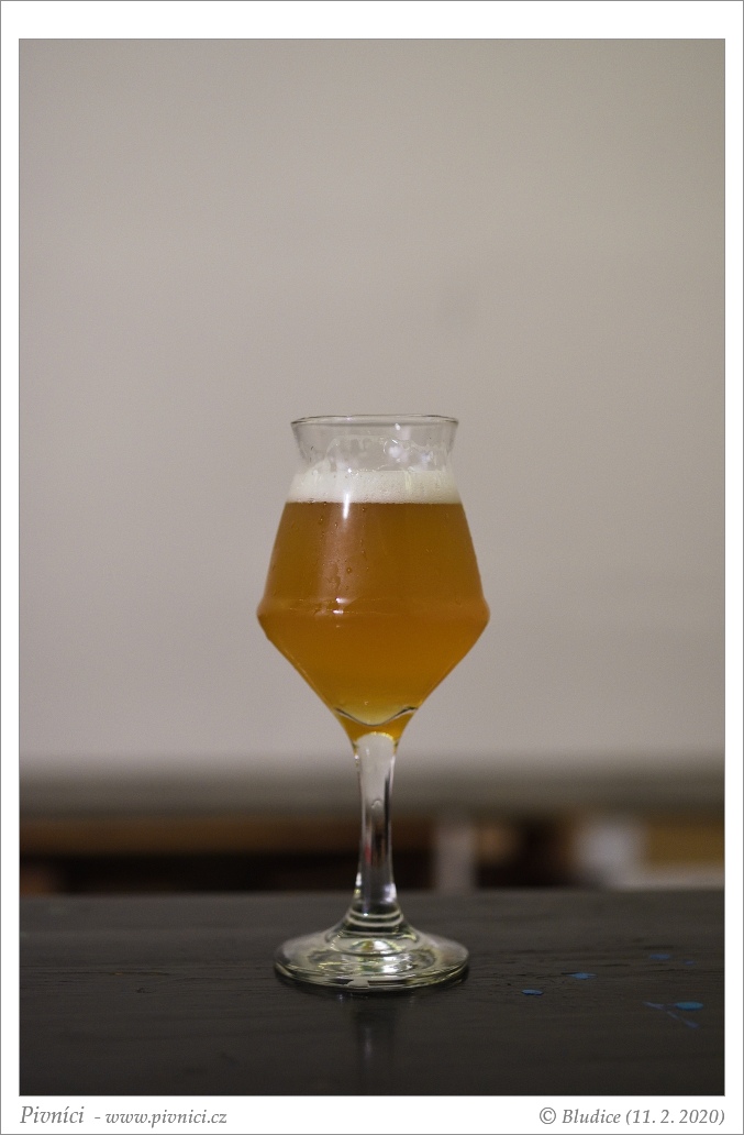 Zlatá barva, středně zakalené. Pěkná světlá pěna, celkem drží.Vůně (4 - výborné):