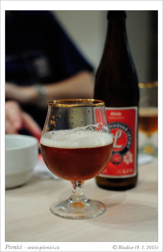 Měděná barva, téměř čiré, slušná světlá pěna, dobře drží.Vůně (2 - průměr):