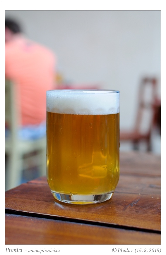 Barva zlatá, lehce zakalené. Pěkná hustá stabilní pěna.Vůně (2 - průměr):
