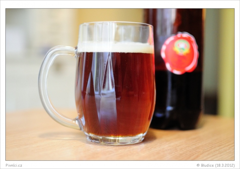 Tmavě jantarová až hnědá barva, středně zakalené, slušná světle okrová pěna, lehce kroužkuje.Vůně (3 - dobré):
