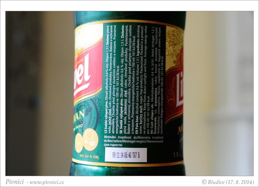Slušně vonící pivo, ale dobré není. Pitelnost horší.Minimální trvanlivost: 19. listopadu 2014