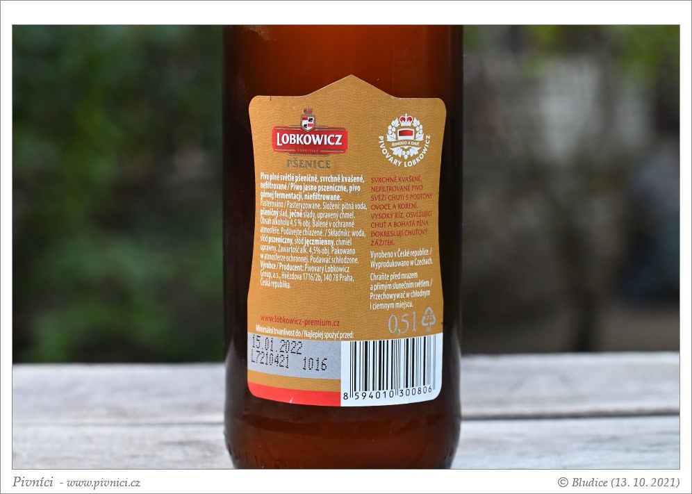 Trochu osobitá, ale vcelku dobře pitelná pšenice. Nicméně poprvé mi chutnala více.Minimální trvanlivost: 21. května 2016